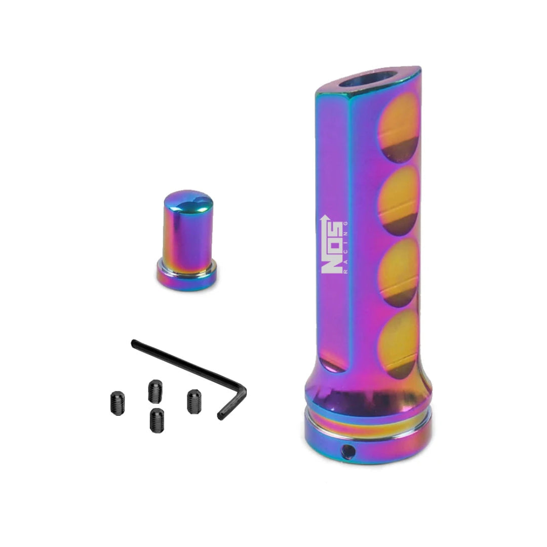 Apportez un style unique et sportif à l’intérieur de votre véhicule avec cette poignée de frein à main JDM. Conçue pour s’adapter à la majorité des véhicules, cette poignée combine design, confort et personnalisation. Elle mesure 13 cm de long, dispose du logo NOS Racing et offre un rendu esthétique inspiré des voitures de sport japonaises.