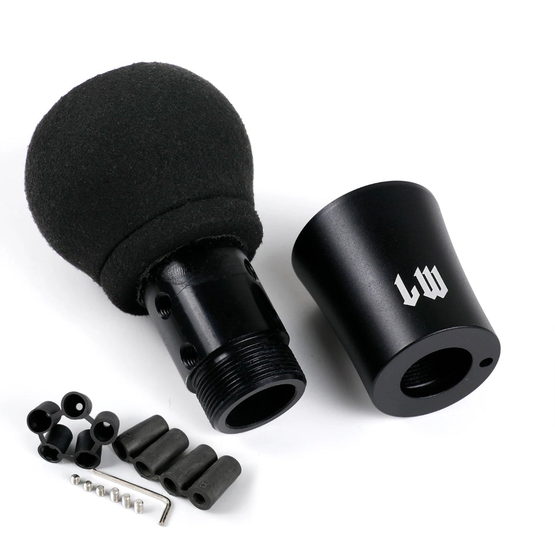 Ce pommeau de vitesse noir est un modèle universel, livré avec plusieurs adaptateurs de différentes tailles, ce qui le rend compatible avec la majorité des véhicules.